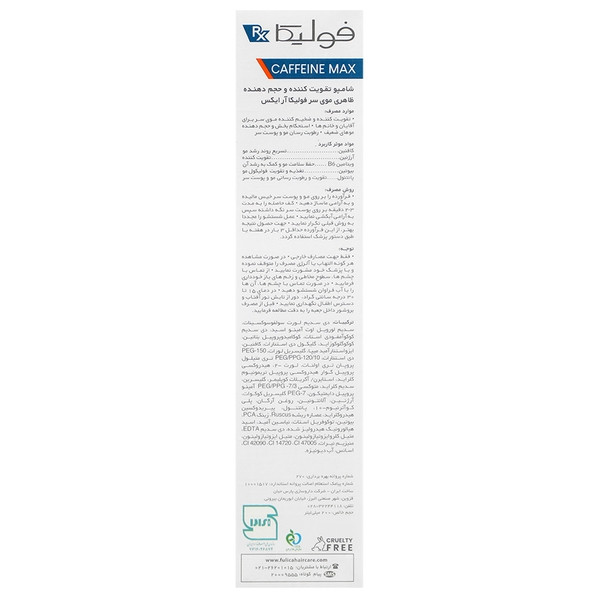 شامپو تقویت کننده کافئین مکس فولیکا آر ایکس، علاوه بر داشتن قدرت شویندگی و پاک کنندگی مناسب به خوبی بر الگوهای ریزش مو زنانه و مردانه (آندروژنیک و غیر آندروژنیک) موثر است و ریزش مو را کاهش می دهد. این فرآورده سرشار از مواد مغذی و تقویت کننده است که علاوه بر حفظ استحکام تار های مو در افزایش ضخامت و حجم آنها نیز موثر است. وجود مواد رطوبت رسان و آبرسان در فرمولاسیون این محصول، مانع از ایجاد خشکی تارها شده و نرمی و لطافت موی آسیب دیده را افزایش می دهد. شامپو کافئین مکس فولیکا آر ایکس فاقد سولفات بوده و برای استفاده روزانه مناسب است.